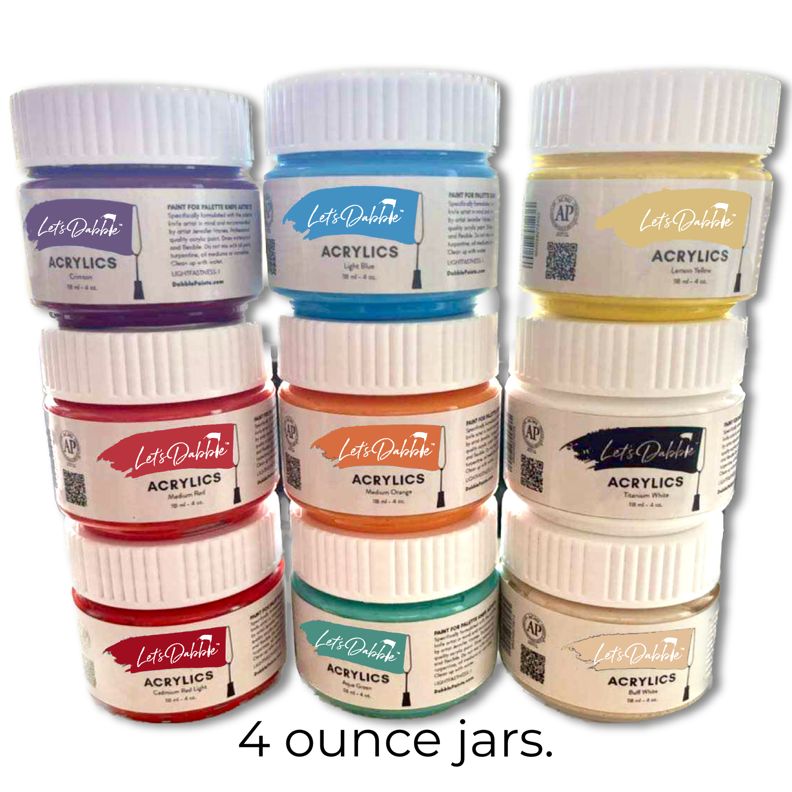 DabblePaints™ Full Acrylic Set – 19 Pro Colors in 4oz Jars